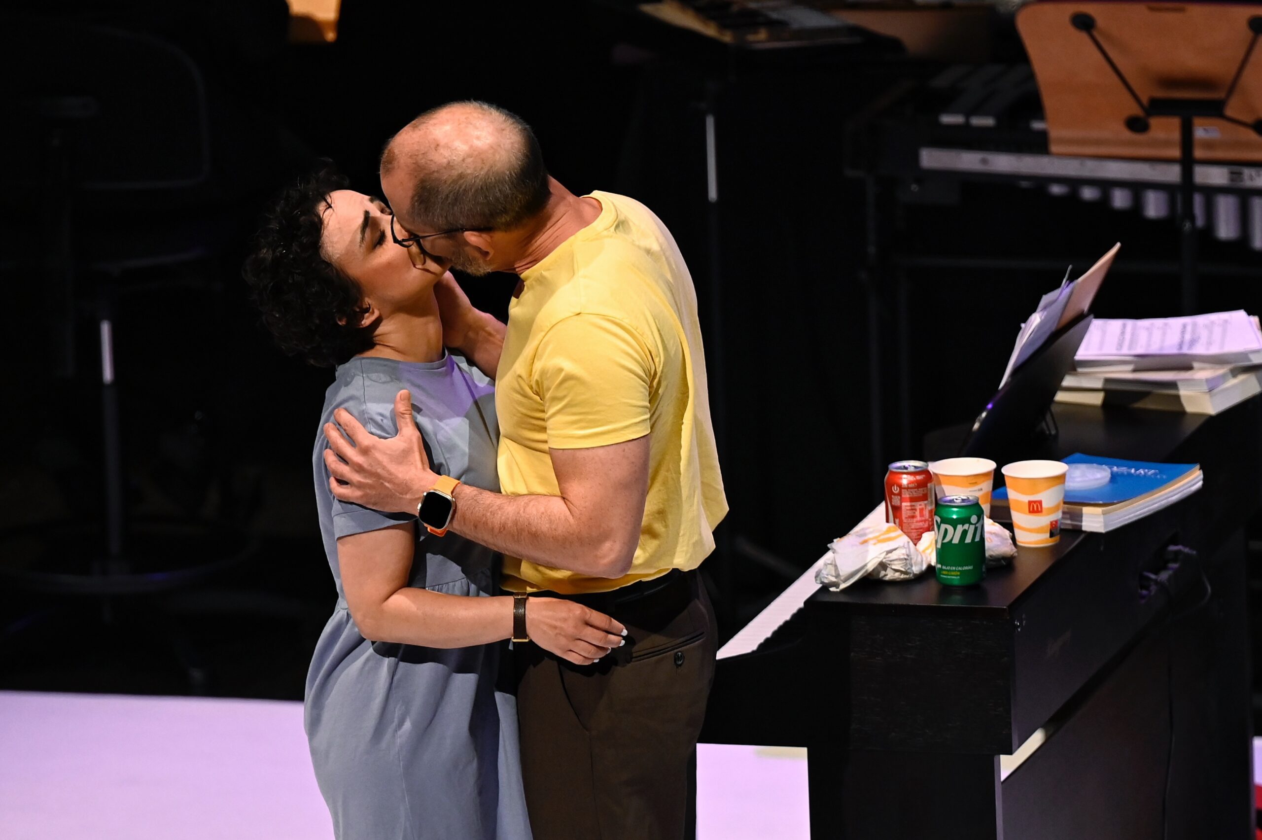 La puesta en escena se articula en torno a una gran pantalla LED y cámaras en directo que amplifican los gestos, descomponen la intimidad y revelan detalles simbólicos esenciales: unas manos que controlan, una mirada que se rompe, una voz que se quiebra. Estos recursos no son ornamentales: son parte esencial del lenguaje de la obra, traduciéndose en una experiencia cinematográfica y emocionalmente incisiva.